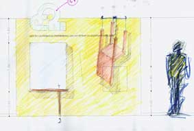 de maquetes (vitrine). No interior do stand, através de